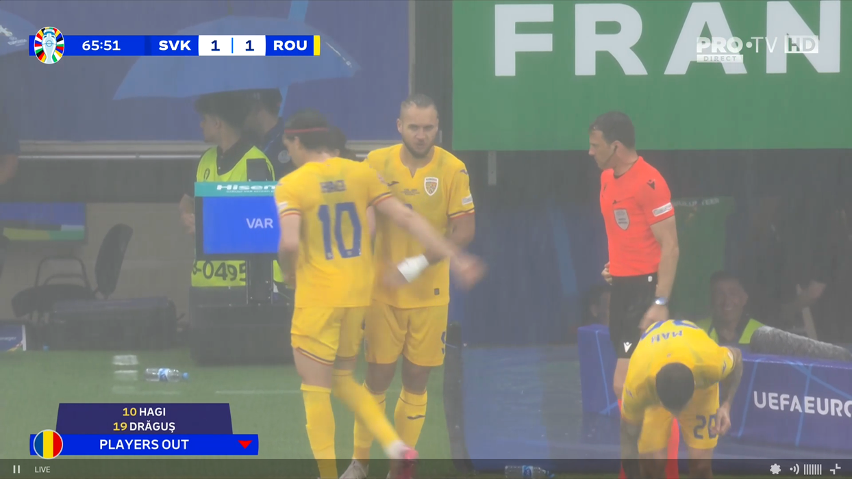 Rupere de nori la Frankfurt! Tunete și căderi masive de apă, Edi Iordănescu a avut nevoie de prosoape pentru a rămâne la marginea terenului