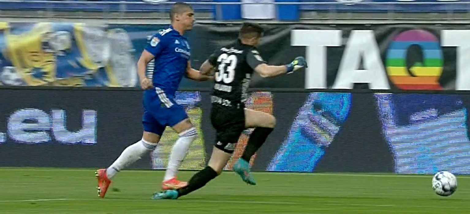 Scandalos! FC U Craiova a deschis scorul cu UTA în urma unei greșeli incredibile de arbitraj. Sorin Costreie i-a iertat pe olteni de eliminare, dar i-a pedepsit pe oaspeți. FOTO