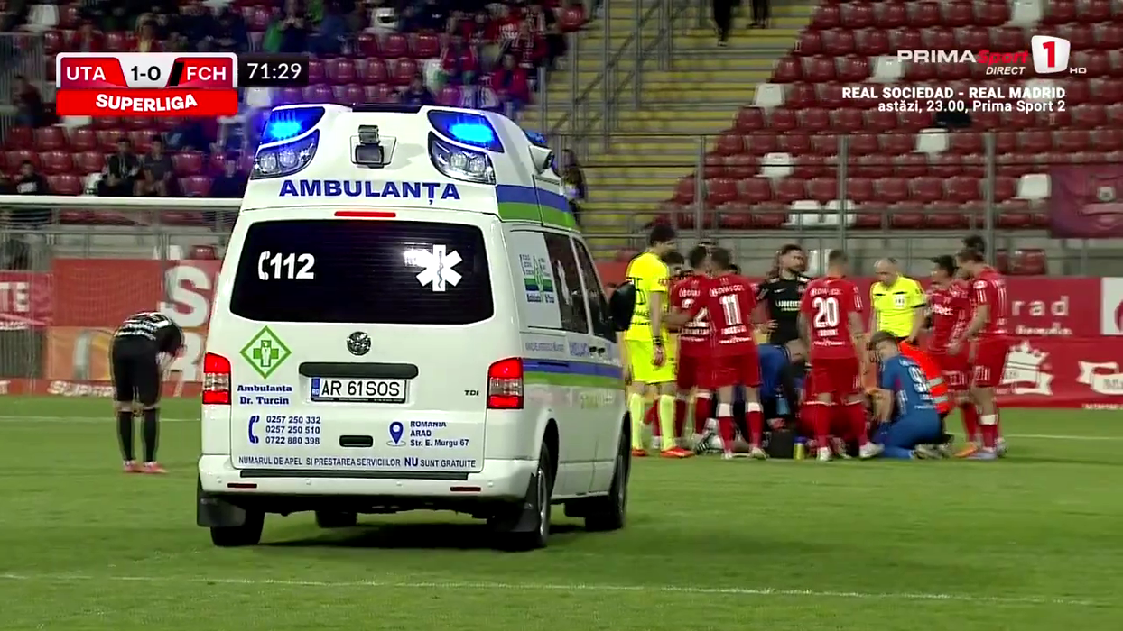 Scene halucinante la Arad: Rareș Pop s-a prăbușit la pământ după ce a tras la poartă. Primul verdict al medicilor. Exclusiv