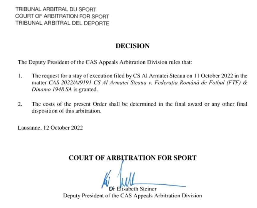Steaua, victorie importantă contra FRF. Echipa lui Oprița a obținut la TAS suspendarea deciziei dată de forul condus de Răzvan Burleanu