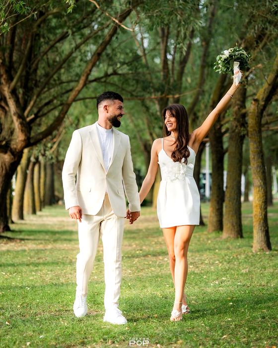 Ținută prea fierbinte la propria nuntă. Cum a venit îmbrăcată „Perla Banatului” în fața ofițerului stării civile. S-a căsătorit cu Marius Constantin, fosta vedetă de la Rapid, care e cu 15 ani mai mare ca ea