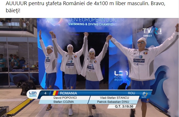 David Popovici a obținut prima medalie de aur la Europene de juniori de la Otopeni. Campionul mondial de la 100 și 200 de metri liber a plecat primul în ștafeta de 4x100m liber. Echipa Marii Britanii a avut o replică de mare nivel, dar ștafeta României a revenit prin Patrick Dinu.