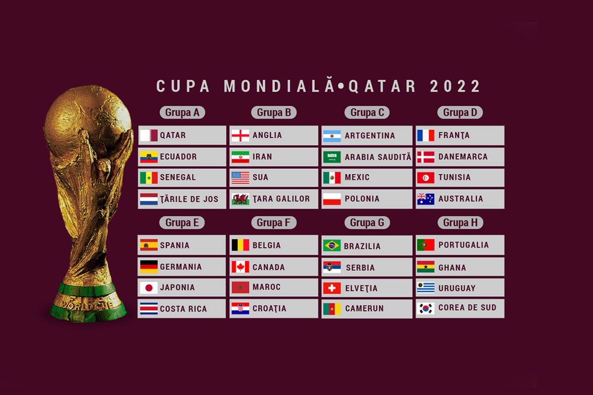 Programul grupelor a fost deja stabilit. Turneul va debuta pe 20 noiembrie, cu duelul dintre Qatar și Ecuator. Marea finală se joacă pe 18 decembrie, cu doar câteva zile înainte de Crăciun.