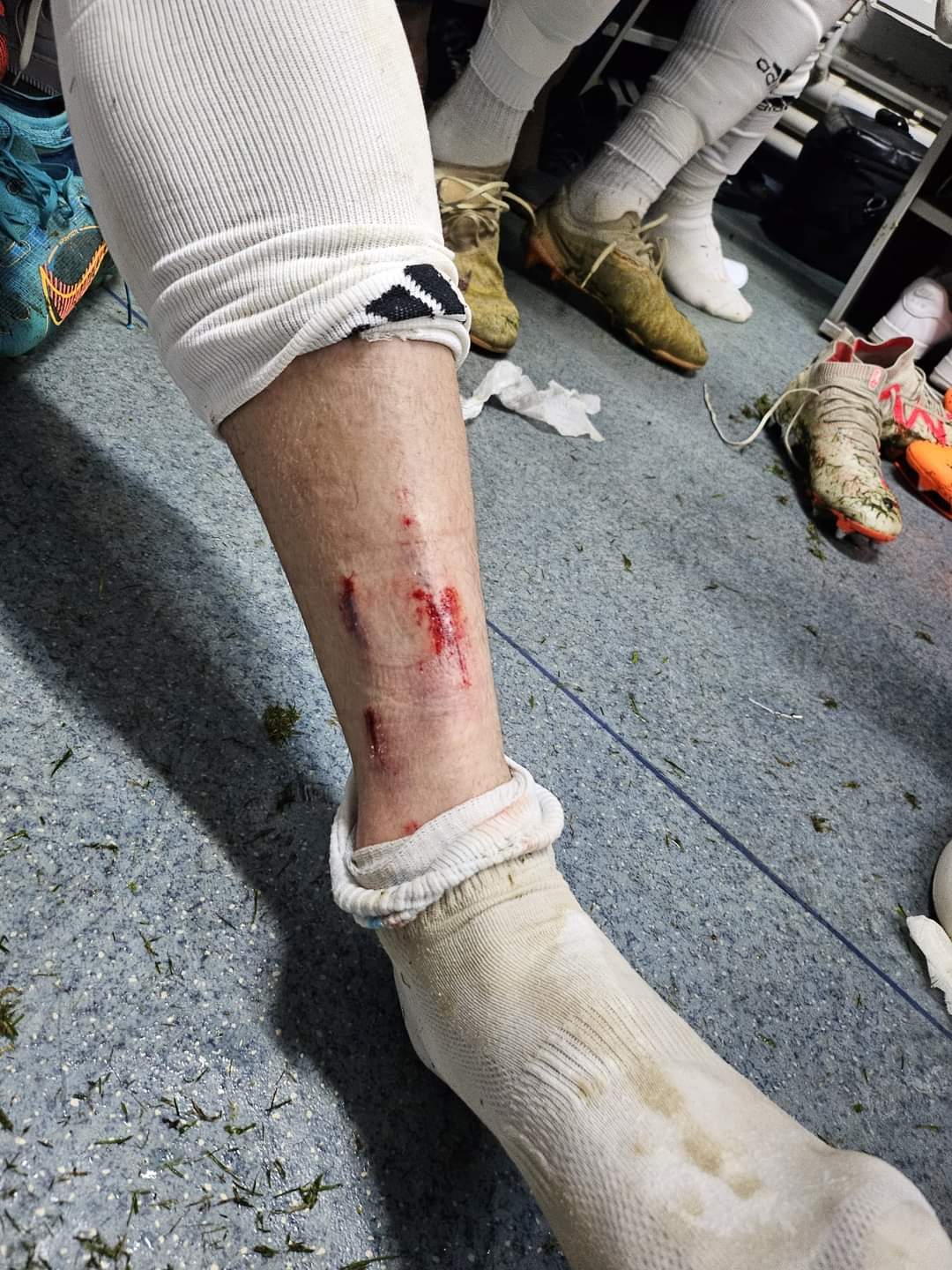 Pe final de meci, Răzvan Patriche a avut o intrare extrem de dură la Alin Șeroni. În urma acestui duel, jucătorul Botoșaniului s-a ales cu tibia plină de sânge, după cum se poate vedea în imaginea de mai jos.