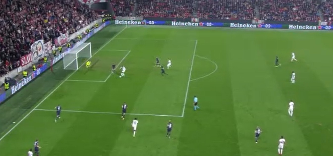 Slavia, recenta amintire a clujenilor, a început în forță partida, în care a fost văzută favorită de toată Europa. Totuși, Dan Petrescu și-a asamblat bine echipa, iar rezultatele s-au văzut pe finalul primei reprize.