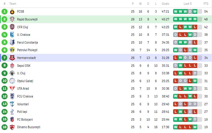 De cealaltă parte, Hermannstadt are o singură victorie în 2024 și un total de cinci puncte adunate. Echipa lui Măldărășanu vrea victoria, pentru a fi sigură că termină etapa pe loc de playoff.