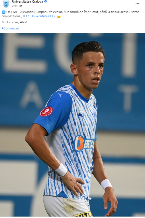 Concret, Alexandru Cîmpanu va evolua sub formă de împrumut, până la finalul acestui sezon, la Universitatea Cluj. Mutarea a fost anunțată cu puțin timp în urmă de formația alb-albastră, prin intermediul paginii oficiale de Facebook.