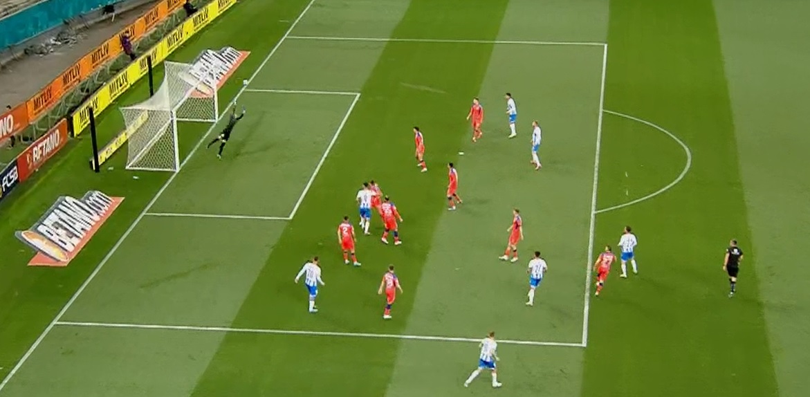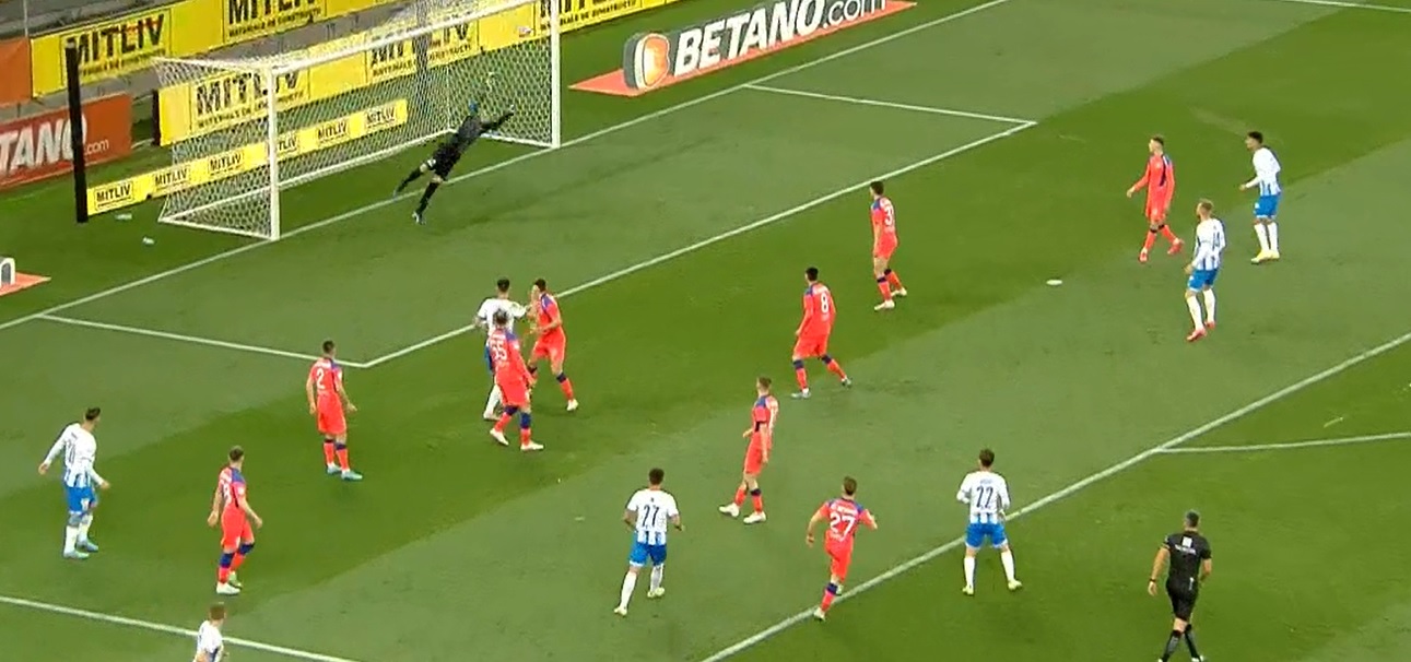 Mijlocașul de 29 de ani a șutat superb, iar mingea s-a dus în plasa laterală de la colțul lung al porții lui Târnovanu (Min74).