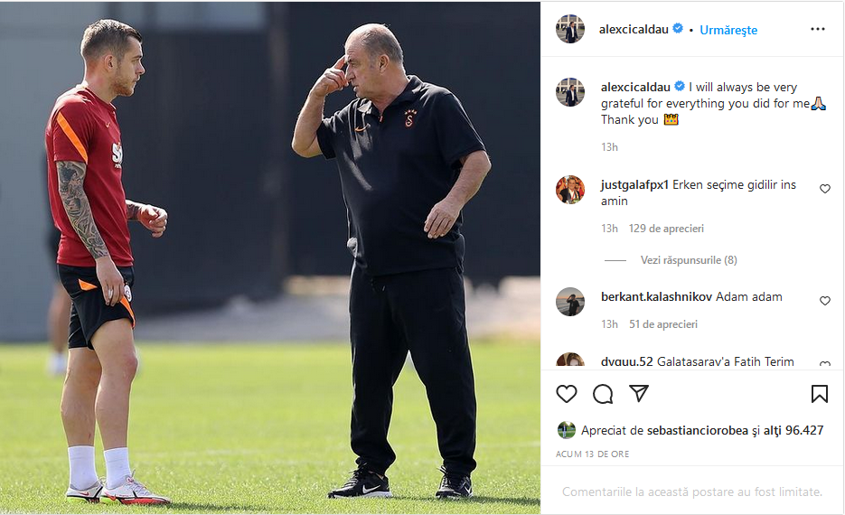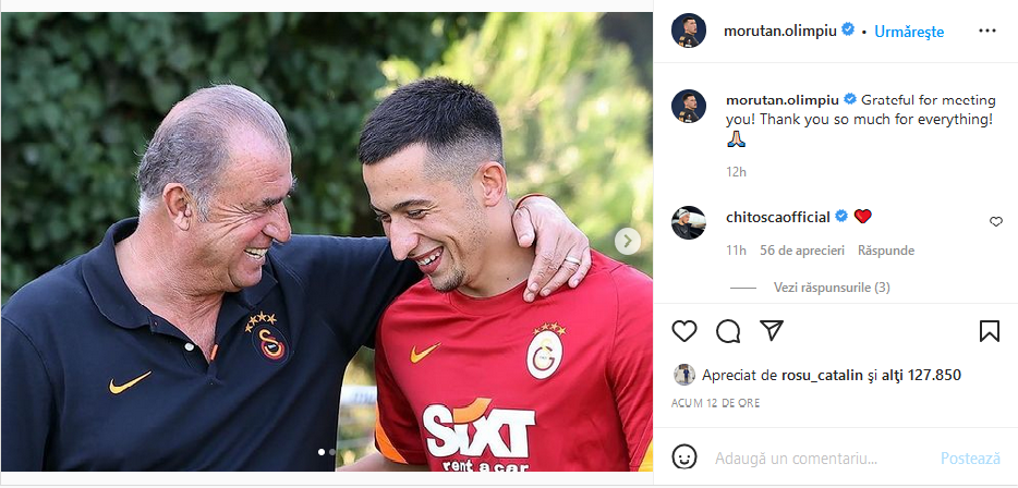 Fatih Terim a fost dat afară de la Galatasaray. Românii Alexandru Cicâldău și Olimpiu Moruțan au avut o primă reacție după plecarea acestuia, prin intermediul conturilor personale de Instagram. Aceștia au postat poze și un mesaj de adio pentru cel mai titrat antrenor din Turcia.