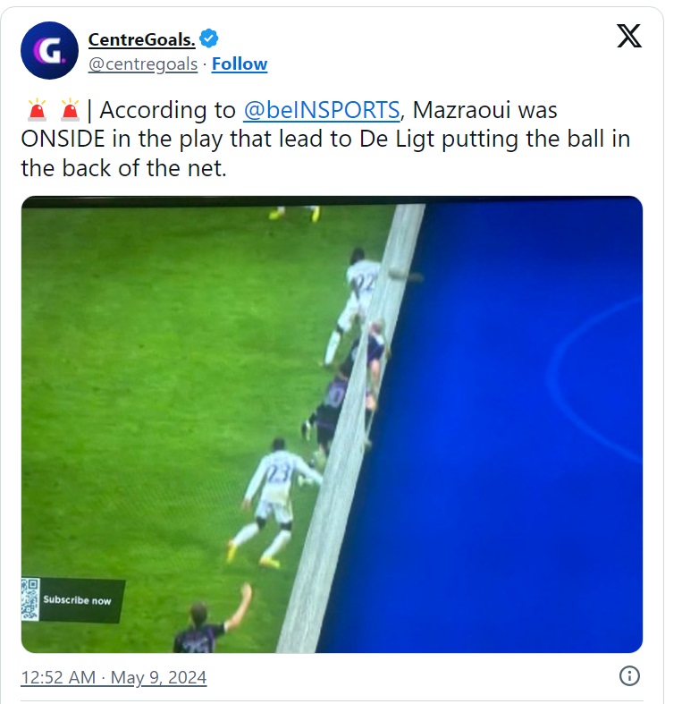 Deși nu au existat imagini oficiale care să lămurească faza, tehnicienii unuia dintre posturile deținătoare de drepturi au lucrat pe cont propriu și au stabilit clar în ce direcție ar fi trebuit să meargă faza. Conform analizei făcute imediat după joc de beIN Sports, Noussair Mazraoui era în poziție regulamentară, astfel că golul ar fi trebuit acordat.