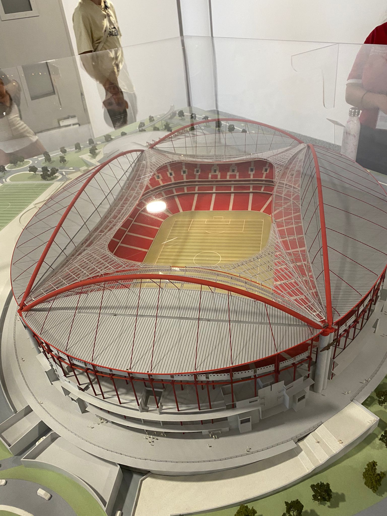 Căutăm, fără timp de poezie, direct prin culoarele lui Estadio da Luz, arena de 65.400 de locuri a Benficăi, construită în 2003 pentru Campionatul European. Macheta stă în loc de bun-venit la intrare (FOTO 1), alături de o reproducere a fostului stadion, cel care în 1987 a strâns peste 135.000 de fani la un Benfica-Porto!