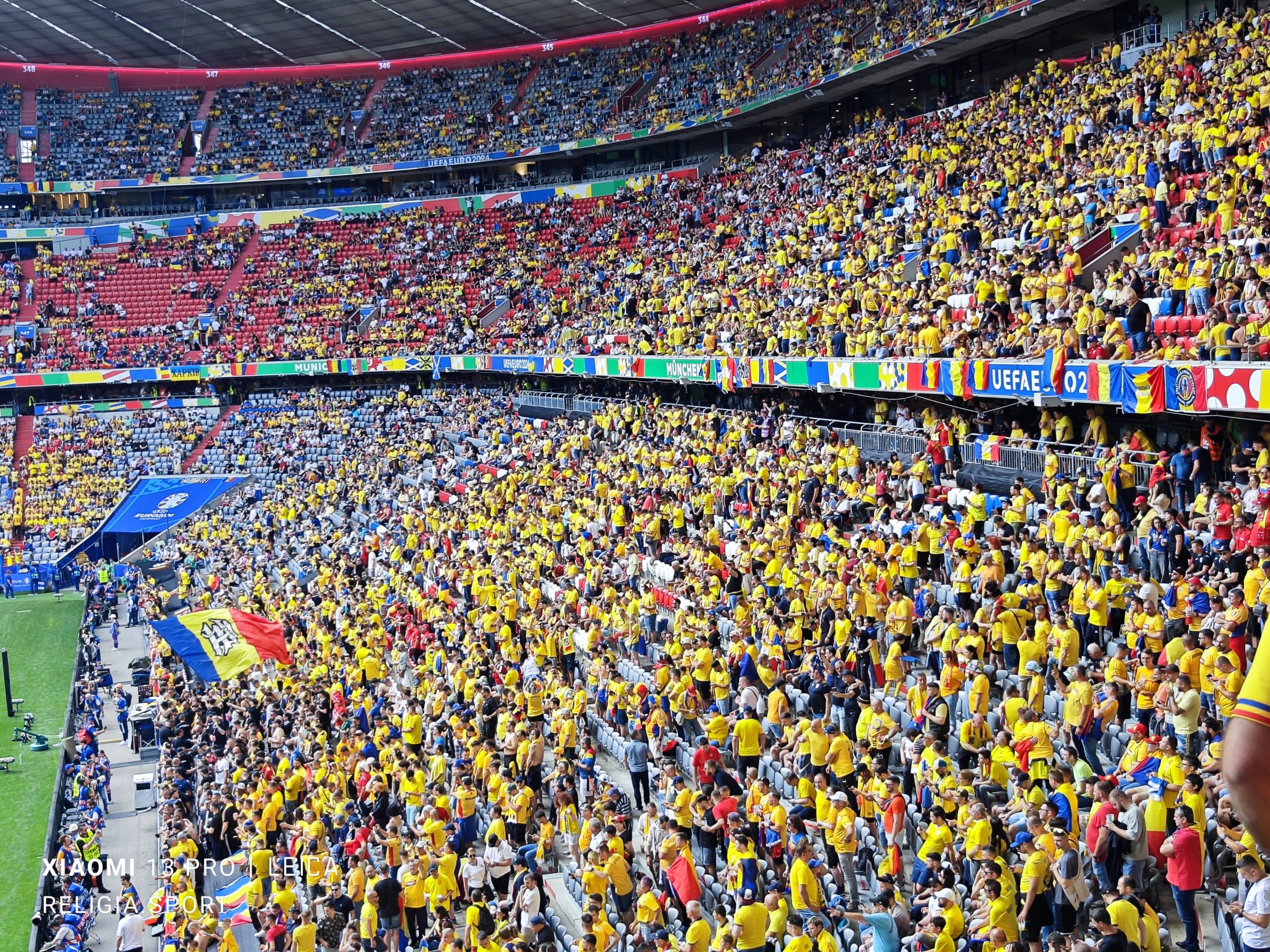 15:30 Peluza României e aproape plină. Imagini superbe de la Munchen. La meci sunt așteptați 30 000 de suporteri români.