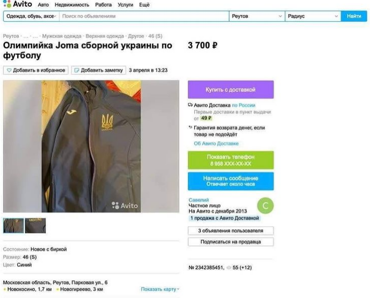 Publicația Fakty anunță că rușii vând pe internet numeroase obiecte furate din Ucraina. Au fost scoase la vânzare pe internet și echipamente oficiale ale naționalei Ucrainei. Rușii au furat hainele de firmă și obiectele de valoare pe care le-au găsit în zonele părăsite, iar acum încearcă să obțină un profit în mediul online.