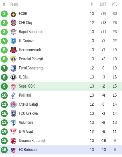 FC Botoşani are 6 puncte acumulate până acum în campionat. Iar echipa lui Dan Alexa încă aşteaptă primul succes în ediţia actuală a Superligii. Moldovenii sunt cel mai dezamăgitor sezon de la promovarea în prima ligă, în urmă cu 10 ani. Botoşaniul revine la Sfântu Gheorghe după ce în ediţia trecută a pierdut duelul direct cu scorul de 7-0!
