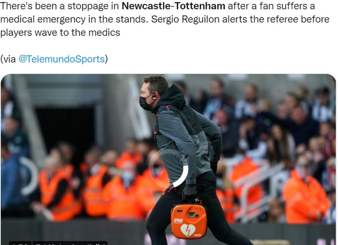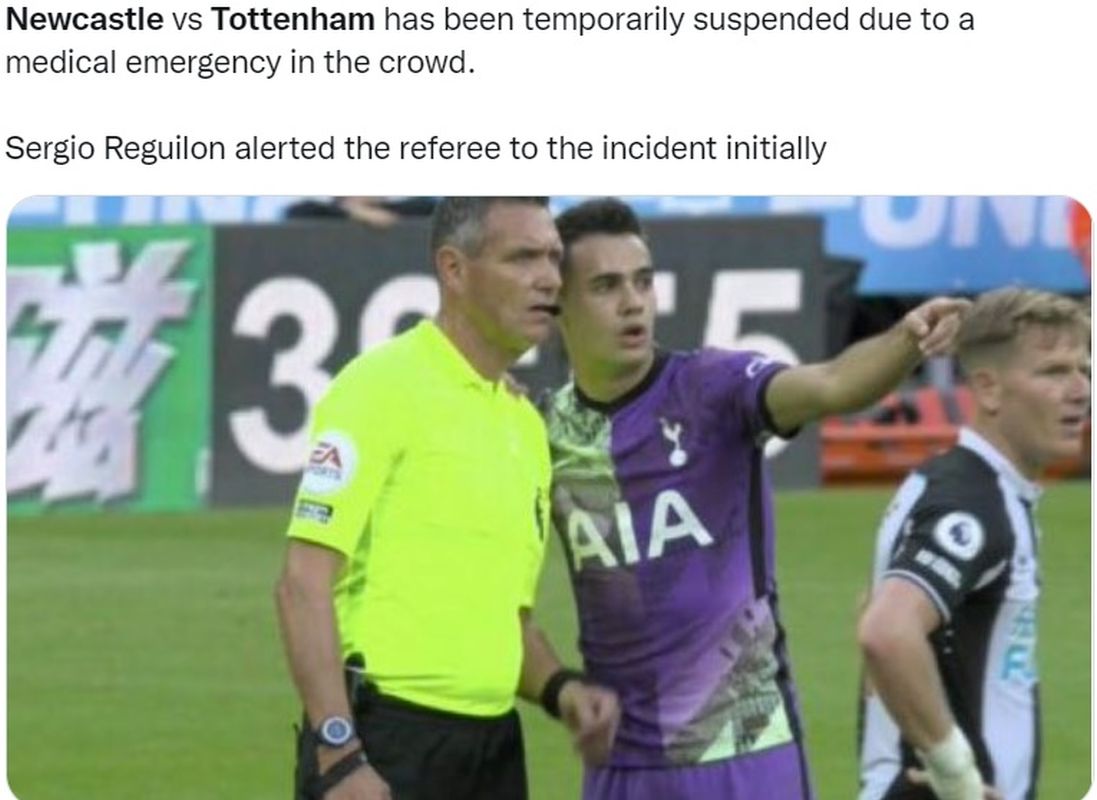 Newcastle a primit vizita celor de la Tottenham, într-o partidă din etapa a 8-a din Premier League. Gazdele erau conduse cu 2-1 de Spurs, când cântecele tribunelor au fost întrerupte din cauza unui incident. Unul dintre suporteri a suferit un atac de cord.