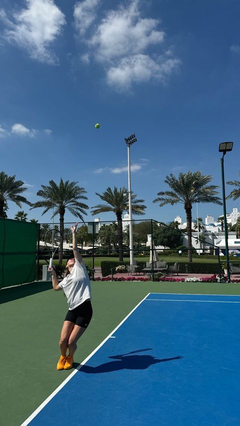 Una dintre ele o surprinde în timp ce trage din greu pe o suprafață hard, pentru a fi în cea mai bună formă dacă va avea câștig de cauză și va putea juca din nou. Condițiile meteo sunt excelente: 23 de grade Celsius.