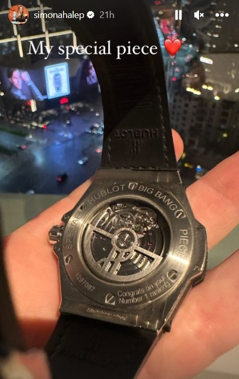 Pe Instagram, dubla campioană de Grand Slam a explicat că piesa este una cu adevărat specială. Asta pentru că pe spatele ceasului apare mesajul: ”Felicitări pentru că te-ai clasat pe locul 1”. În urmă cu ceva timp, sportiva a dezvăluit că obișnuiește să colecționeze atât telefoane, cât și ceasuri de lux.