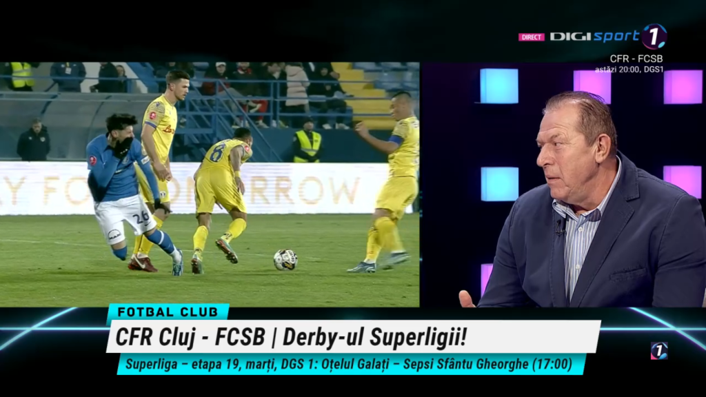În studioul Digisport, moderatorul Fotbal Club, Radu Naum, și analistul Ilie Dumitrescu au avut un dialog în contradictoriu pe marginea imaginilor care curgeau în background.