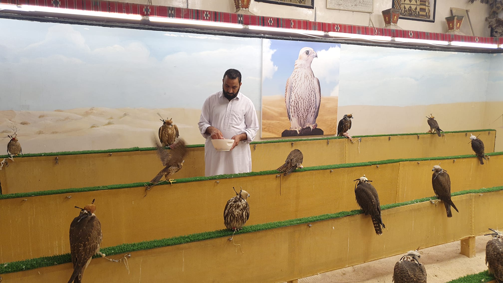 ”Bine ați venit în sanctuarul meu”, ne salută Haled la intrare. De fapt, este sanctuarul unor animale divinizate în zona arabă: șoimii. Pentru beduini, a vâna în deșert cu prădătoarele aerului însemna însăși asigurarea existenței. A hranei. Iar povestea conviețuirii dintre om și pasăre a născut o tradiție milenară, conservată și promovată azi în întreg Orientul Mijlociu.