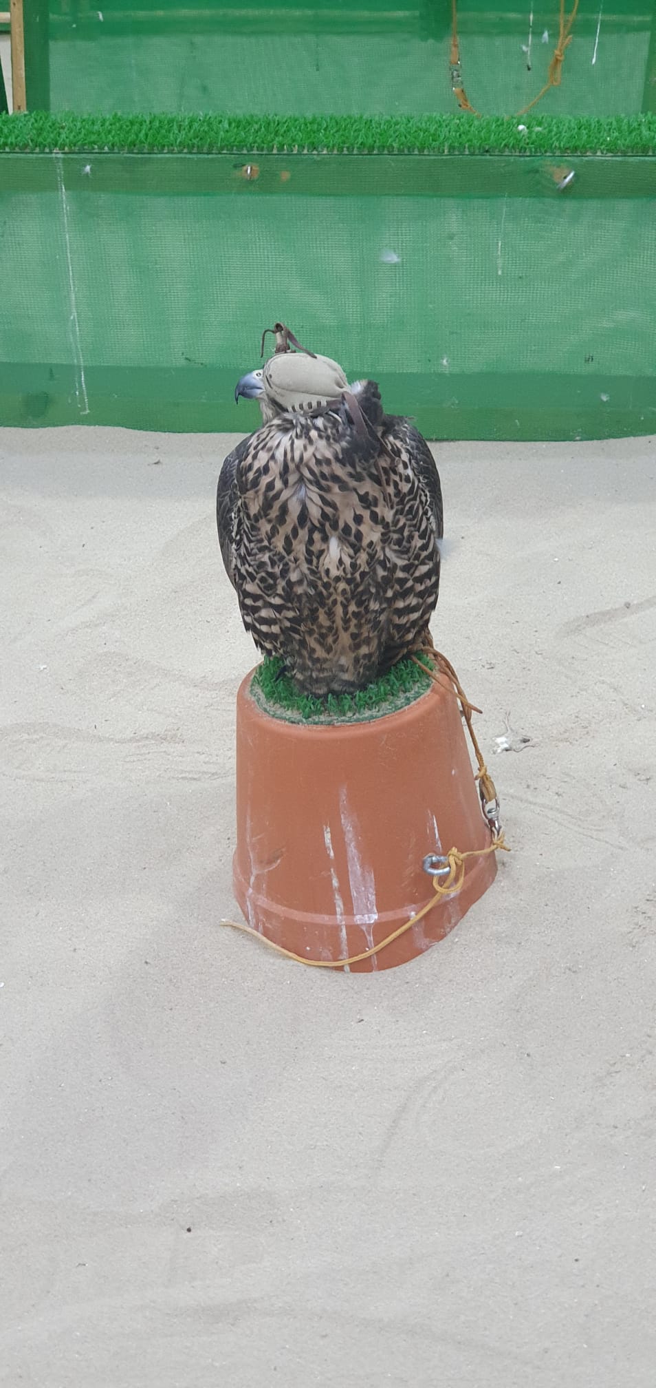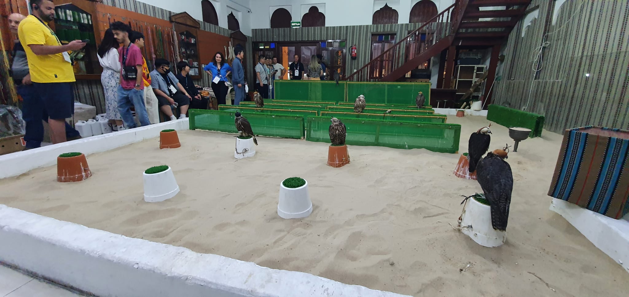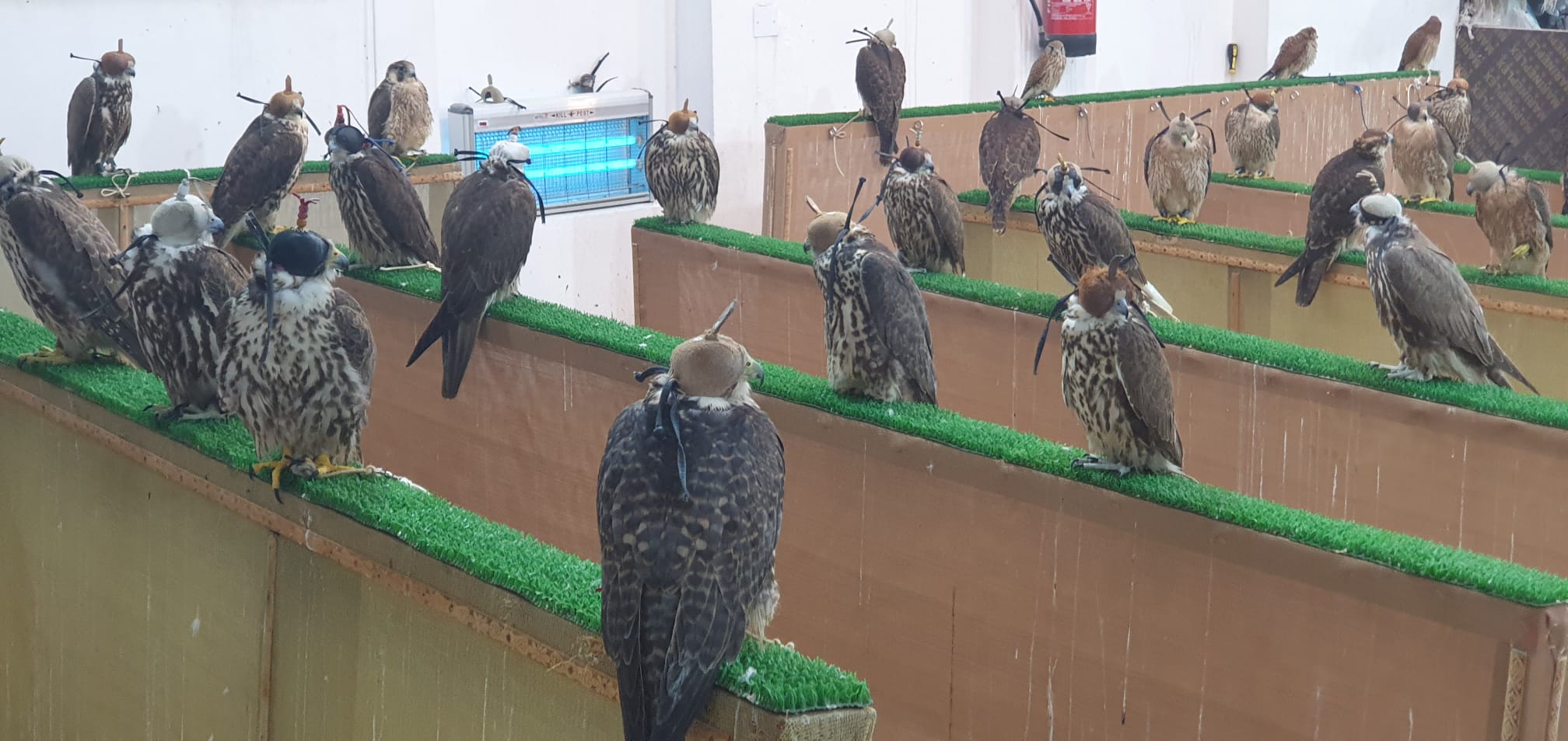 Aici, pe postamente interioare și exterioare, păsările stau cu o mască pe cap, pentru protecție și pentru a fi relaxate, ferite de vânzoleala turiștilor ori a potențialilor cumpărători. De jur-împrejur, o întreaga industrie forfotește: echipamente de vânătoare, ateliere pentru măști, mâncare, produse veterinare și artizanale, mănuși de protecție, manșoane, dispozitive pentru fixarea picioarelor, plumbi.