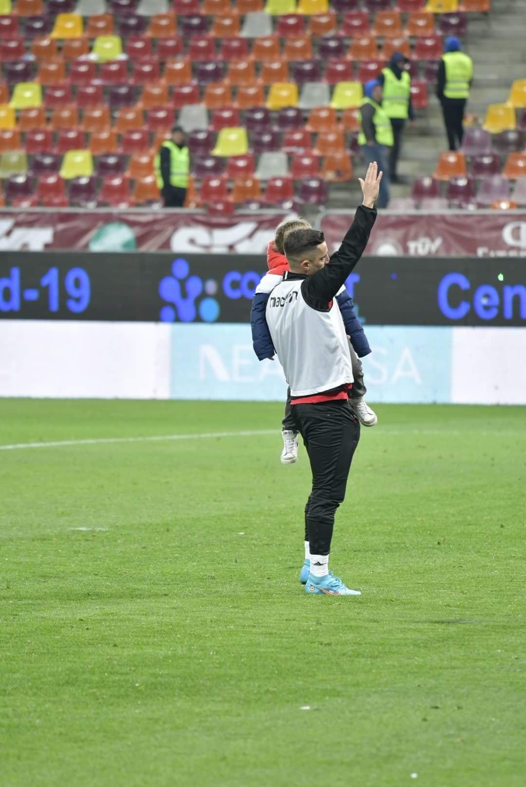 *Steliano Filip și copilul său, în timp ce salută galeria și își cere scuze pentru cele întâmplate