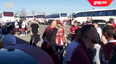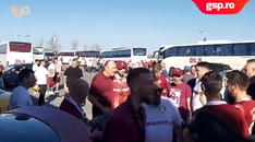 La prima oprire făcută pe drum, Șucu a avut parte de o reală surpriză. Fanii l-au înconjurat și patronul a fost solicitat minute bune pentru poze. Unul dintre suporteri a dat drumul imnului Rapidului la volum maxim, iar atmosfera de Giulești a fost recreată instant. Fanii au început să scandeze, iar Șucu i-a acompaniat și a strigat pentru Rapid alături de ei.