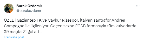 Informaţia privind interesul lui Gaziantep a fost făcută publică pe contul de pe o reţea de socializare al unui jurnalist turc.