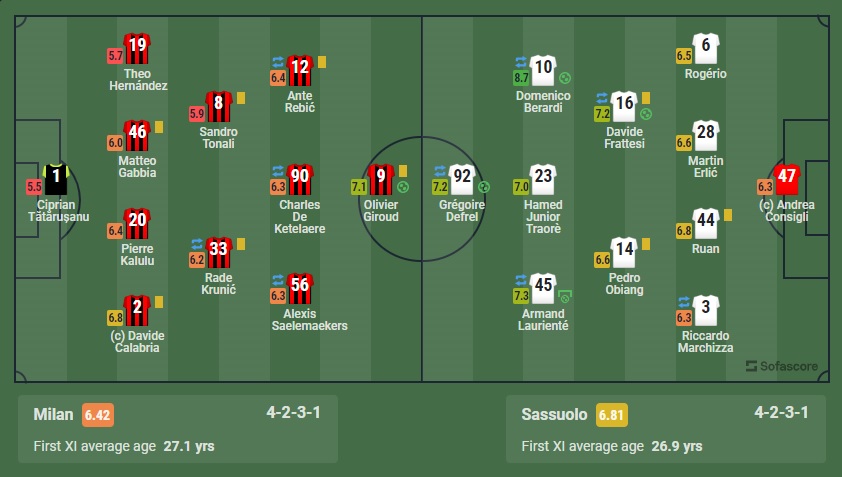 După 20 de etape jucate, AC Milan este pe locul 4 în Serie A și are 38 de puncte acumulate. Liderul Napoli are cu 12 mai mult și un meci mai puțin jucat. Sassuolo ocupă poziția cu numărul 16 și are 20 de puncte în 20 de meciuri.