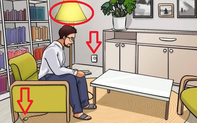 În caz că nu ai reușit încă, răspunsul îl vei afla în continuare. Mai precis ștecherul lămpii nu este conectat la nicio priză, acesta fiind ascunsă sub fotoliu. Este un detaliu subtil pe care mulți nu-l observă la început. Așa că, într-adevăr, trebuie să ai o privire atentă pentru a identifica această greșeală.