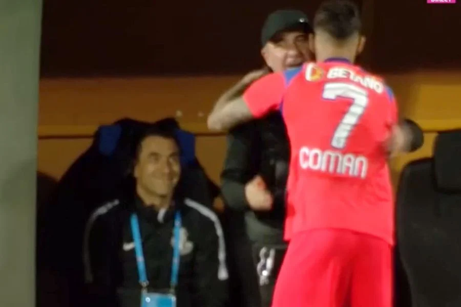 Florinel Coman a oferit una dintre imaginile serii. Înaintea partidei, mijlocașul a mers la banca oaspeților și l-a îmbrățișat pe Gică Hagi.