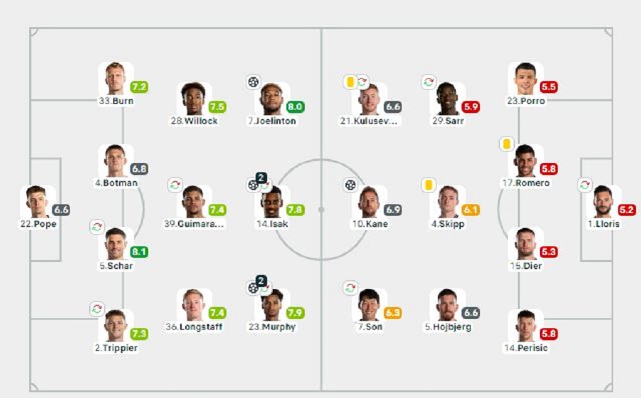 Sub privirile arbitrului David Coote, Jacob Murphy a deschis balul încă din minutul 2. Peste doar patru minute, brazilianul Joelington a dublat avantajul lui Newcastle din pasa fundașului Fabian Schar. Același Jacob Murphy a dus scorul la 3-0, ca Alexander Isak să facă ”dubla” în minutule 19 și 21 și să facă tabela să arate un scor total neașteptat: 5-0.