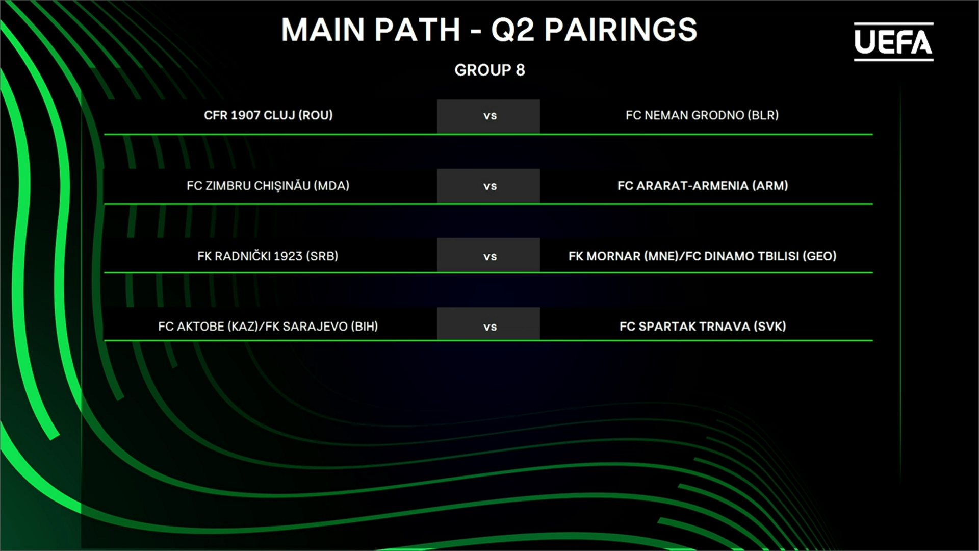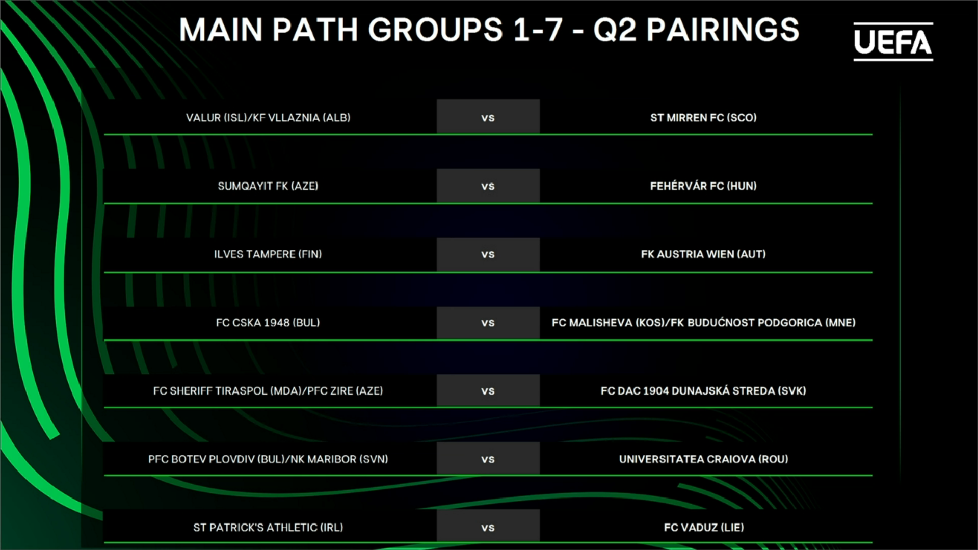 Dacă va ajunge în cea de-a treia competiție valorică de pe continent, FCSB va da piept cu învingătoarea dintre Flora Tallinn și Nk Celje, în vreme ce Corvinul o va întâlni pe AEK Larnaca din Cipru în cazul în care va fi eliminată de Paksi.