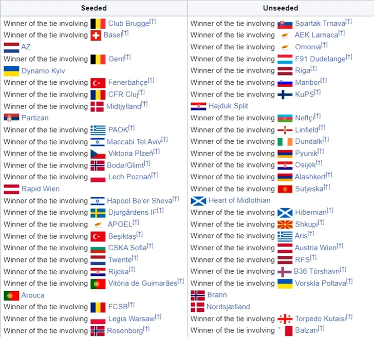 Lista posibilelor adversare ale FCSB, CFR Cluj și Sepsi. Foto: Wikipedia