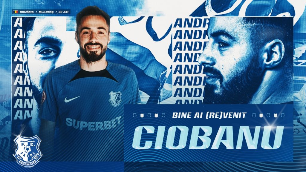 „Mijlocașul Andrei Ciobanu este de astăzi noul jucător al Farului, după ce a semnat un contract valabil pentru următorii 2 ani. În vârstă de 26 de ani, jucătorul născut la Bârlad este un produs al Academiei Hagi și a debutat în Liga 1 acum opt ani, pe 9 aprilie 2016, în meciul FC Viitorul – Astra Giurgiu 1-3. Până în prezent, a disputat 190 de partide în toate competițiile de seniori, marcând 27 de goluri și oferind 14 pase decisive.