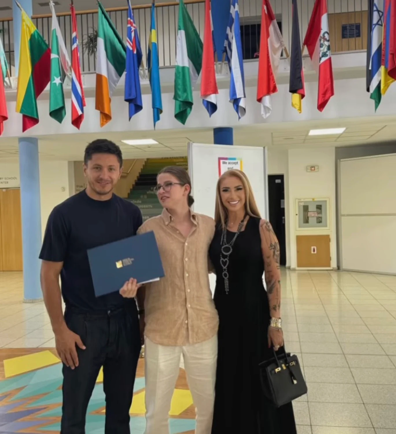 Bebeto a fost însoțit, la festivitatea de absolvire, de mama sa, Anamaria Prodan, și iubitul acesteia, boxerul Ronald Gavril.