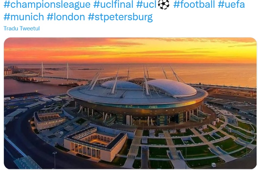 Forul continental a hotărât ca finala Ligii Campionilor, programată la Sankt Petersburg, să fie mutată. Evenimentul este prevăzut a avea loc pe 28 mai și va fi a 67-a finală a primei competiții din fotbalul european.