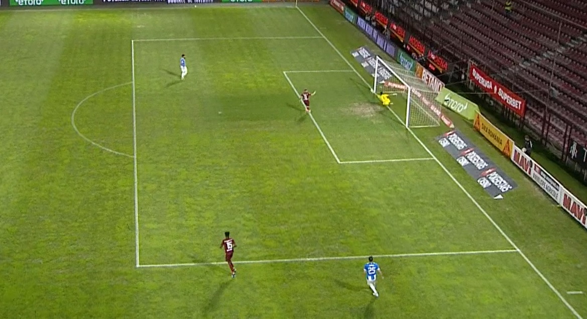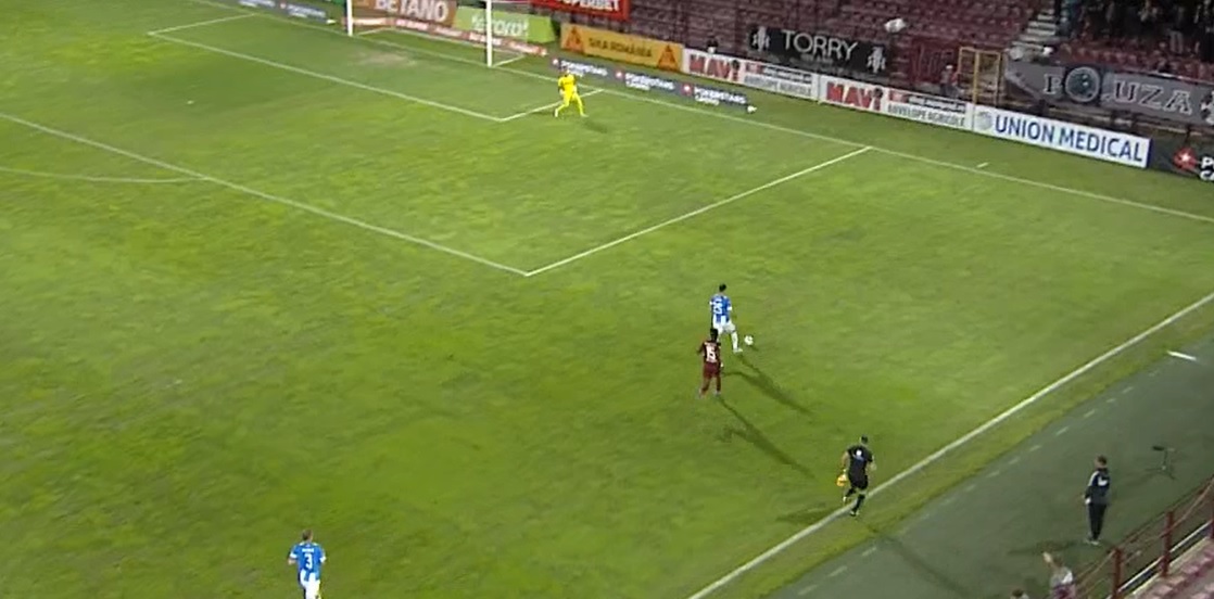 Suprins de soluția fundașului, portarul nu a mai putut prinde mingea, care a depășit linia porții înainte ca Lazar să o degajeze.