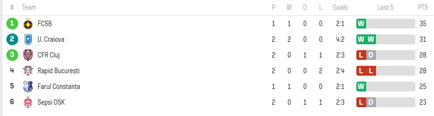 Cum arată clasamentul înainte de Universitatea Craiova – Rapid: