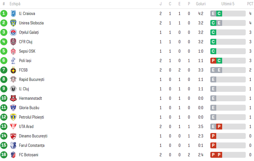 În prima rundă, UTA Arad a reușit să scoată un punct pe teren propriu în meciul cu Rapid, terminând la egalitate, scor 1-1, în timp ce Universitatea Craiova a obținut o remiză fără goluri în fața echipei Hermannstadt.