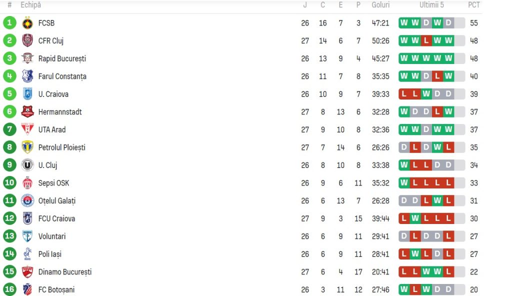 Petrolul, echipa din Ploiești, se află pe locul 7, cu 35 de puncte, la doar două puncte distanță de Hermannstadt, care ocupă locul 6. În același timp, echipa condusă de Mircea Rednic, UTA Arad, se află pe locul 9, cu 34 de puncte.