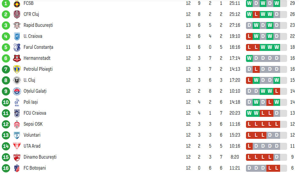 De cealaltă parte, Rapid a câștigat, în ultimul meci de campionat, în fața celor de la Poli Iași, 3-2. Formația giuleșteană ocupă locul 3 în campionat, cu 22 de puncte.