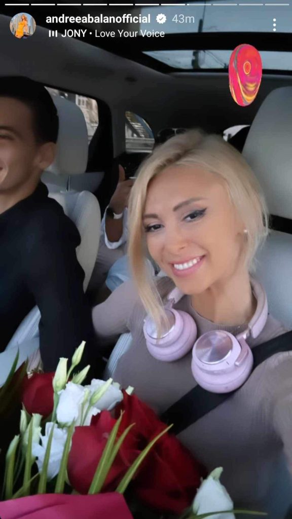 Cântăreața a publicat o imagine cu iubitul ei. Fotografia a fost realizată în timp ce cuplul se plimba cu mașina. În imagine se vede că blondina a primit un buchet frumos de trandafiri roșii și zâmbește larg, semn că a bucurat-o enorm gestul pe care l-a făcut Victor Cornea.