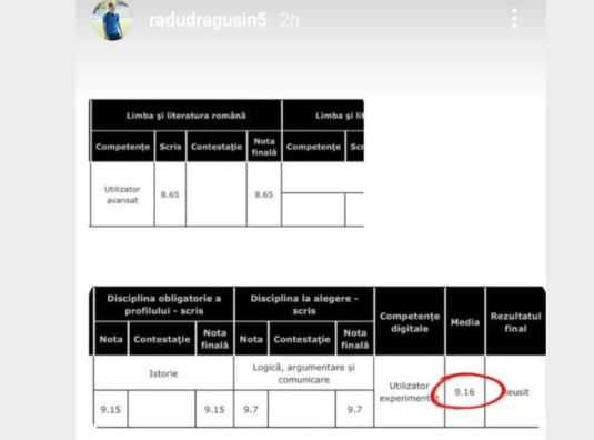 De asemenea, un alt tânăr fotbalist de perspectivă, Radu Drăgușin, legitimat la Salernitana, „lanterna roșie” din Serie A, a avut note remarcabile la examenul de bacalaureat: 8,65 la Limba Română, 9,15 la Istorie și 9,7 la Logică. Media finală a fost 9,16.