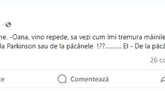 ”Eu, cu Vio mai devreme. -Oana, vino repede, sa vezi cum îmi tremura mâinile tare. Eu – De la ce vrei sa fie, Viorele de la Parkinson sau de la păcănele !?? El – De la păcănele”, a scris Oana Lis, în cadrul unei postări pe rețelele sociale.