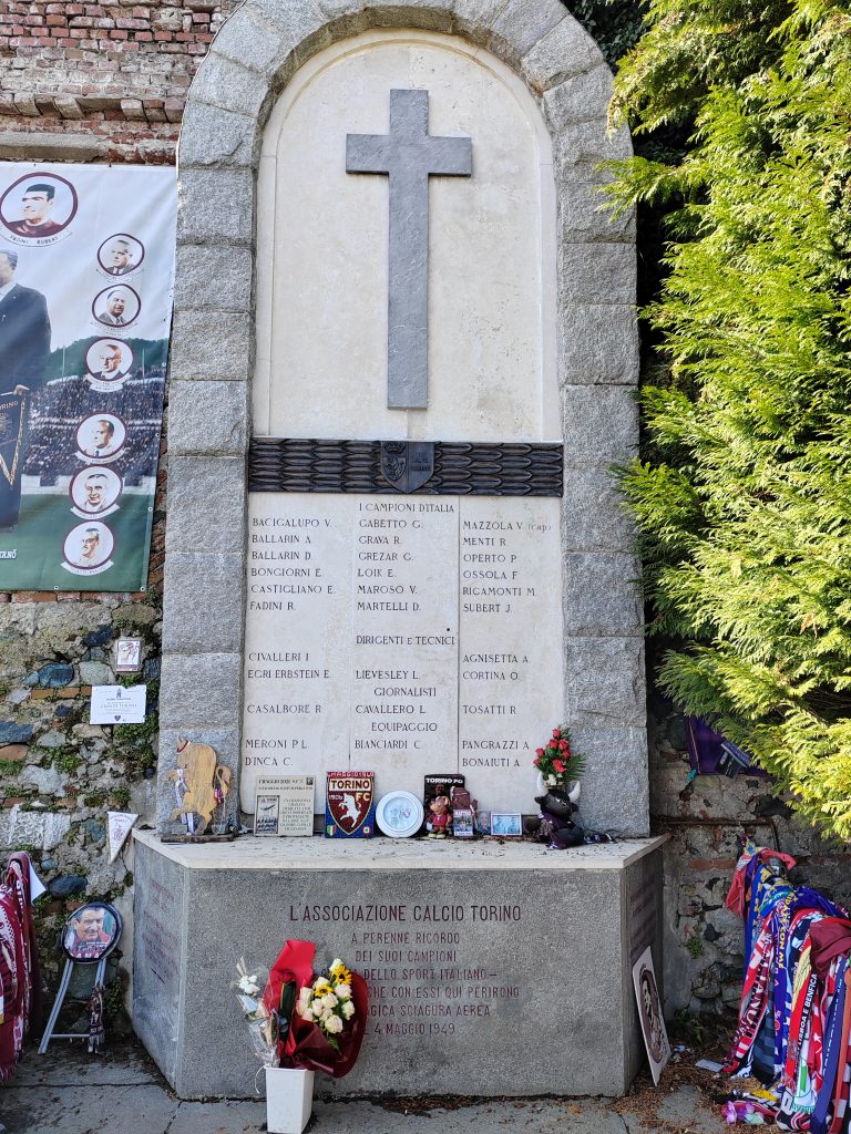 În marginea orașului, în vârful unui deal numit Superga, se află una dintre cele mai celebre biserici din Italia. Pe zidul din spatele acesteia, fanii au dedicat un monument celor decedați în tragedia aviatică de acum 74 de ani. Zeci de fulare ale echipei din Torino stau legate în fața unui altar pe care se află numele celor 31 de decedați.